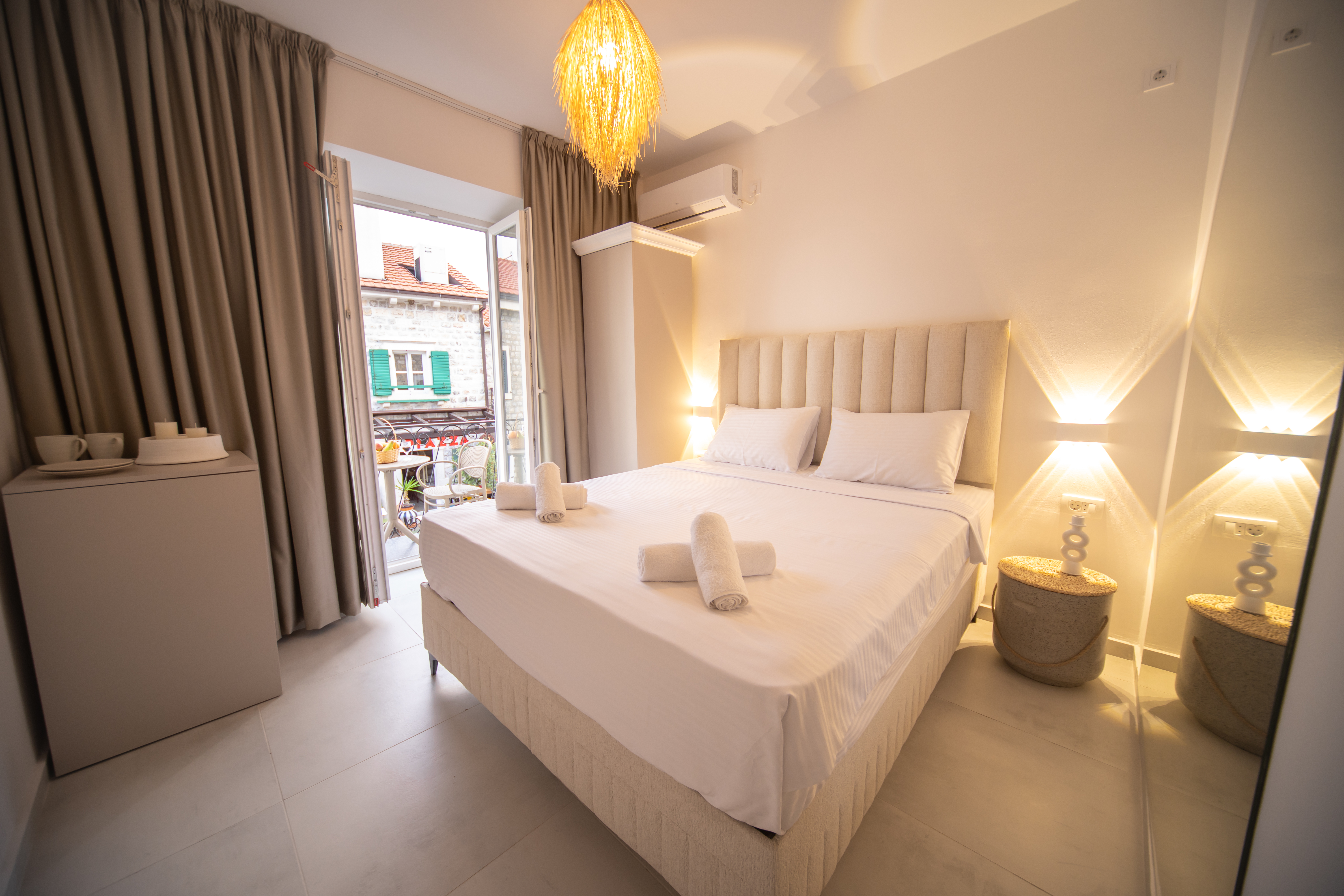 Nalaze se na samoj obali, dijeli ih samo setaliste od plaze, balkoni i svaki apartman ima pogled na more.